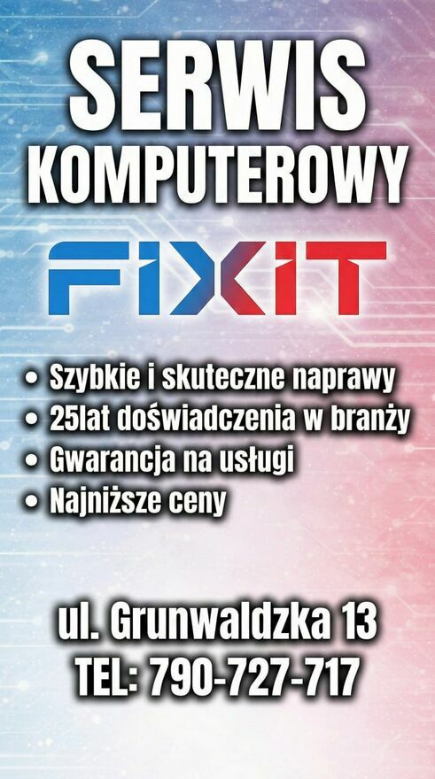 W dniach 16 do 20 lutego 2026 promocja 50% na wykonane usługi.Pakiet „Laptop jak nowy”