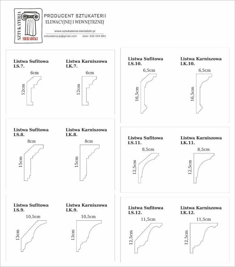 * Możliwość zamówienia indywidualnych wzorów i wielkości lub zmiany tych parametrów w sztukateriach przedstawionych w naszym aktualnym katalogu