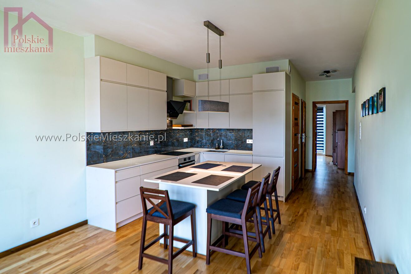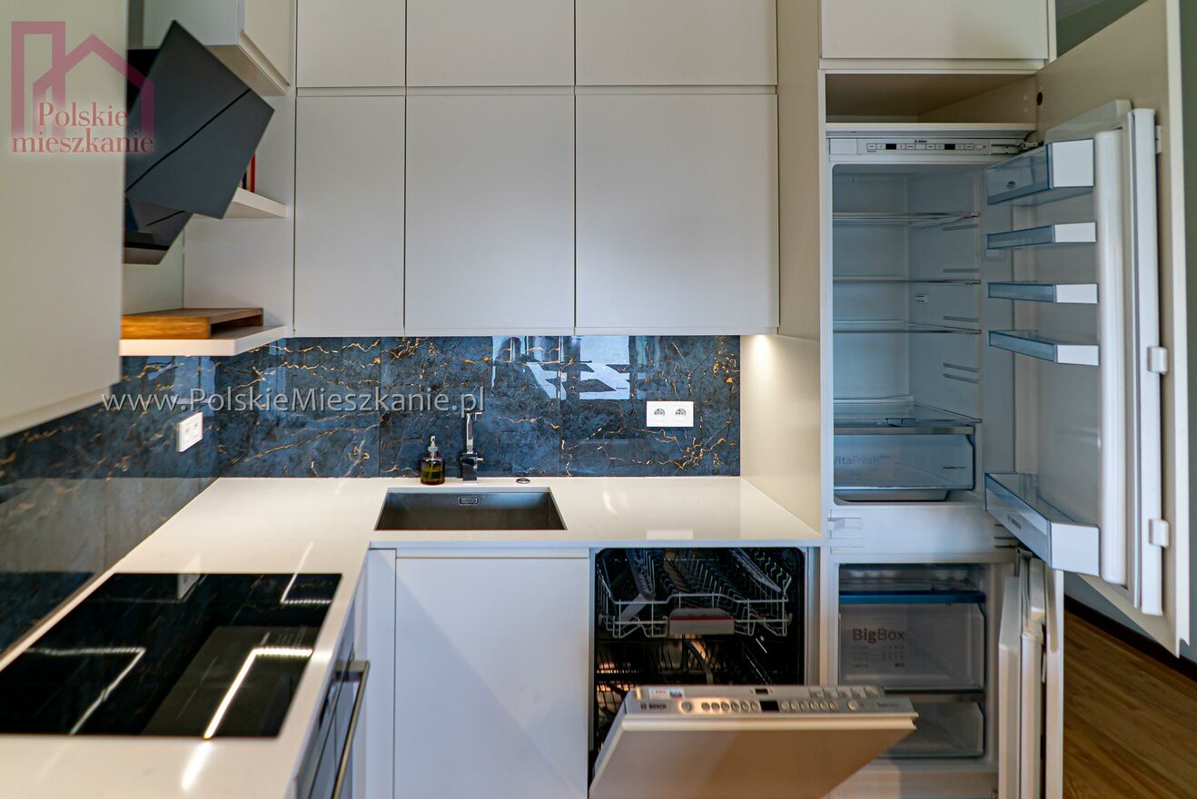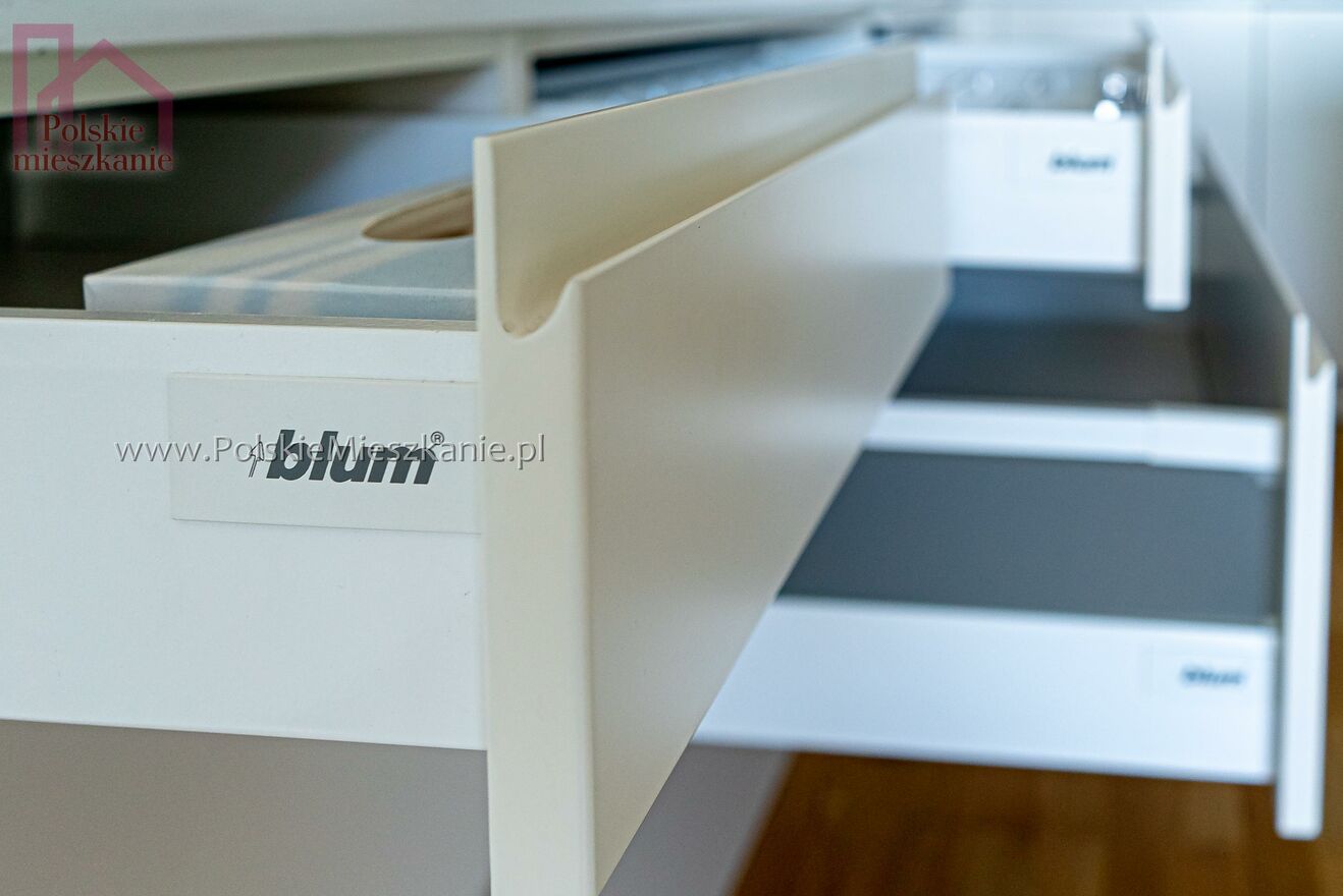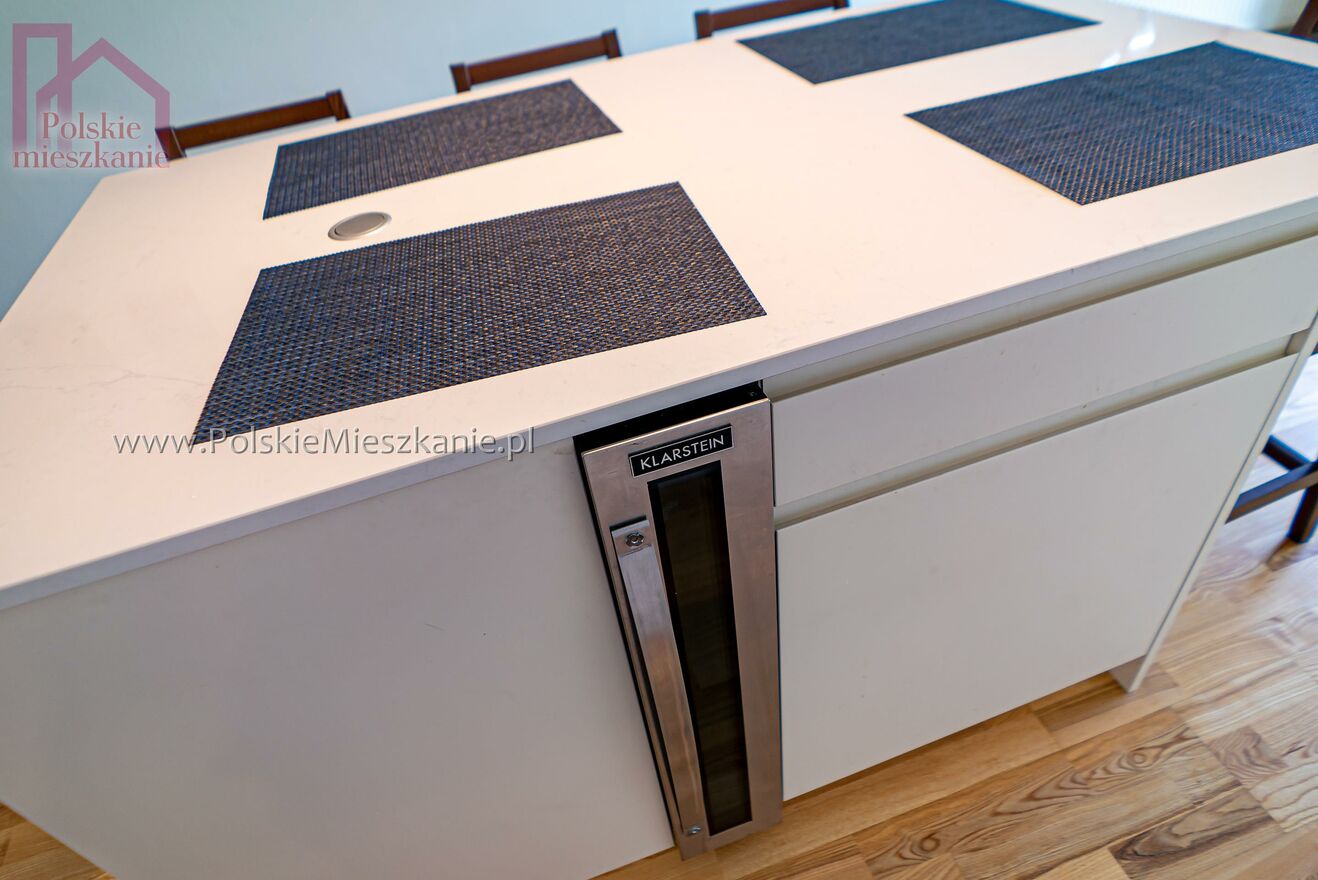 Mieszkanie zostało luksusowo wykończone. W cenie zawarty jest zestaw mebli kuchennych wraz ze sprzętem AGD firmy BOSCH: zmywarka, lodówka, okap, mikrofalówka, piekarnik, płyta indukcyjna. Lodówka na piwo i wino firmy Klarstein wbudowana. Młynek na odpady, zlewozmywak i bateria firmy Franke. Blat kuchenny oraz blat wyspy kuchennej - z kamienia naturalnego kwarcytu, który w ostatni latach zyskał popularność dzięki wysokiej trwałości oraz dzięki niepowtarzalnej kolorowej i wzorowej gammie. W łazience i w WC zamontowane ogrzewanie podłogowe. W pokojach znajdują się nowoczesne szafy.