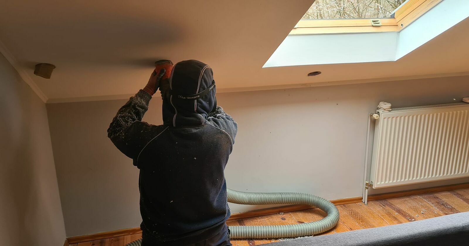 Za pomocą tej metody możemy wykonać naprawę izolacji dachu , poddasza , skosów bez demontażu płyt kartongipsowych.